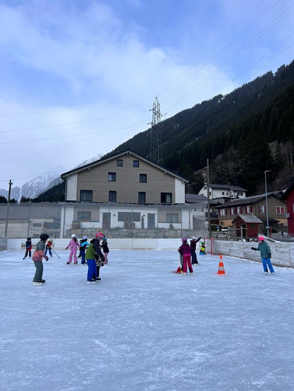 Die 2. und 4. Klasse verbrachten einen fröhlichen Morgen auf dem Eisfeld in Göschenen. Mit viel Begeisterung und guter Laune wurde Schlittschuh gefahren. Einige Kinder spielten Eishockey, während andere sich rasante Wettrennen auf dem Eis lieferten.
