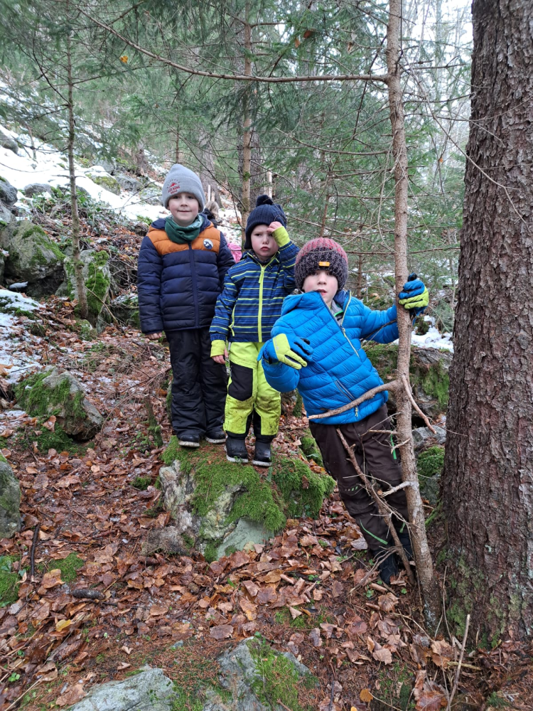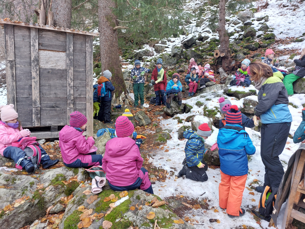 Am 15. Dezember 2022 ist die Basisstufe im Fruttwald auf Spurensuche gegangen. Was machen die Waldtiere im Winter? Die Kinder haben Hufabdrücke von Gämsen, angeknabberte Tannzapfen und Nüsse und Vogelfedern gefunden. Zudem durften sie wie die Eichhörnchen im Herbst Nüsse verstecken und wieder suchen gehen. Nach dem stärkenden Znüni freuen sich die Kinder, wenn sie im Wald spielen und sich austoben dürfen.