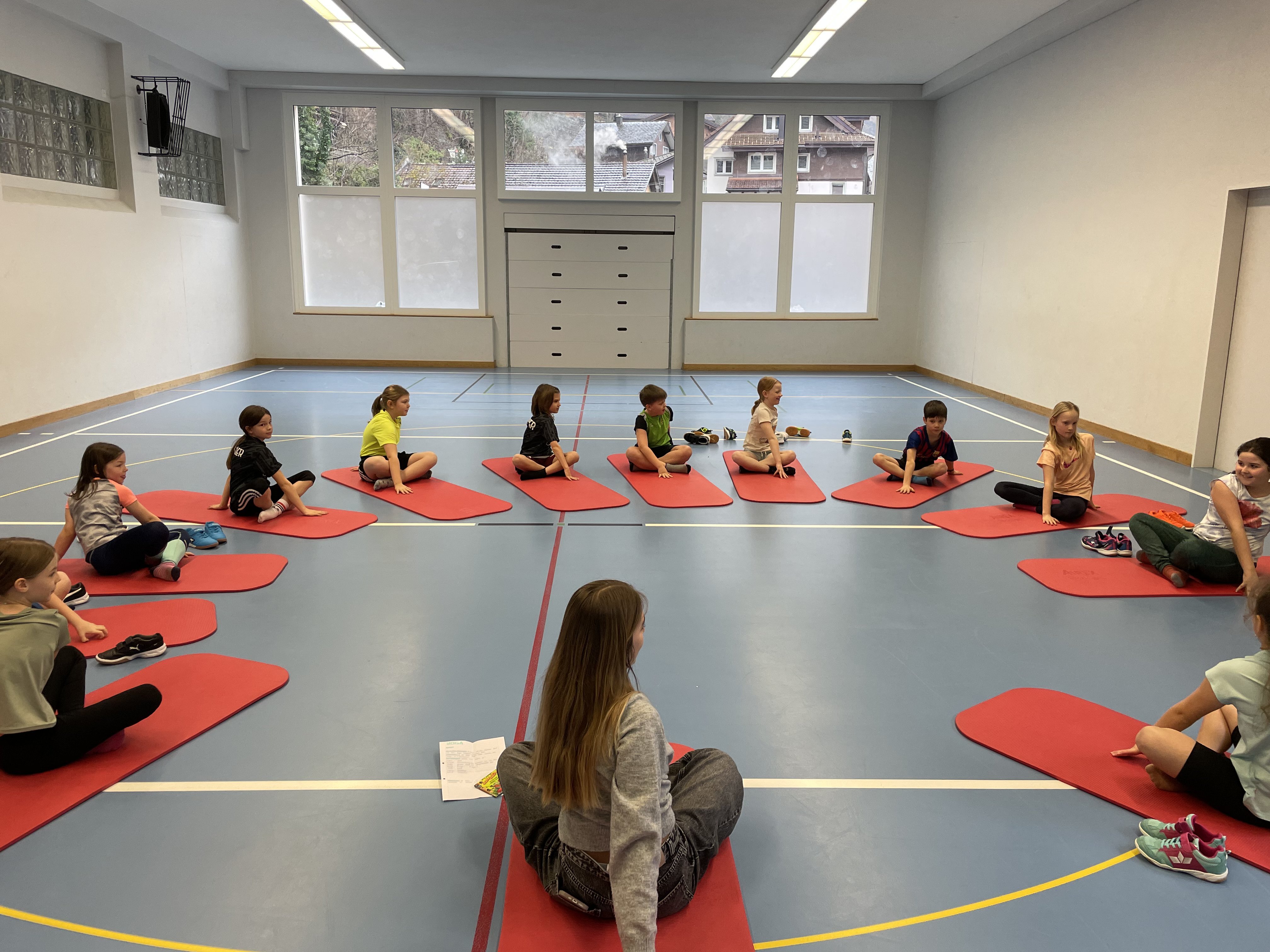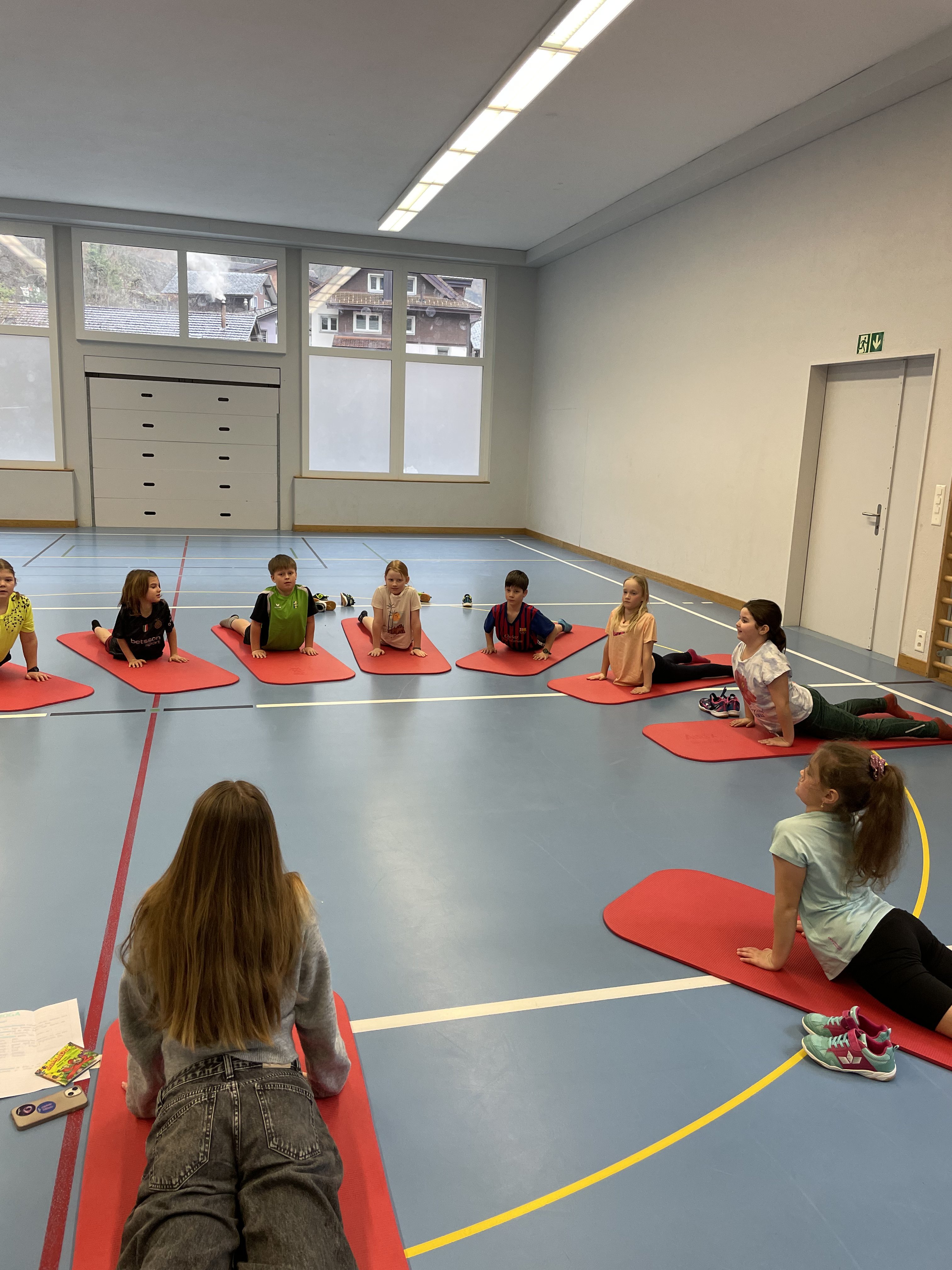 In der vergangenen Woche durften die Kinder der 3. Klasse Amsteg eine besondere Turnlektion erleben: Schülerinnen der Oberstufe gestalteten für sie eine abwechslungsreiche Yoga-Stunde.