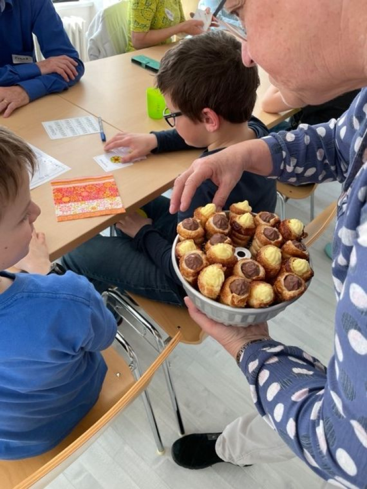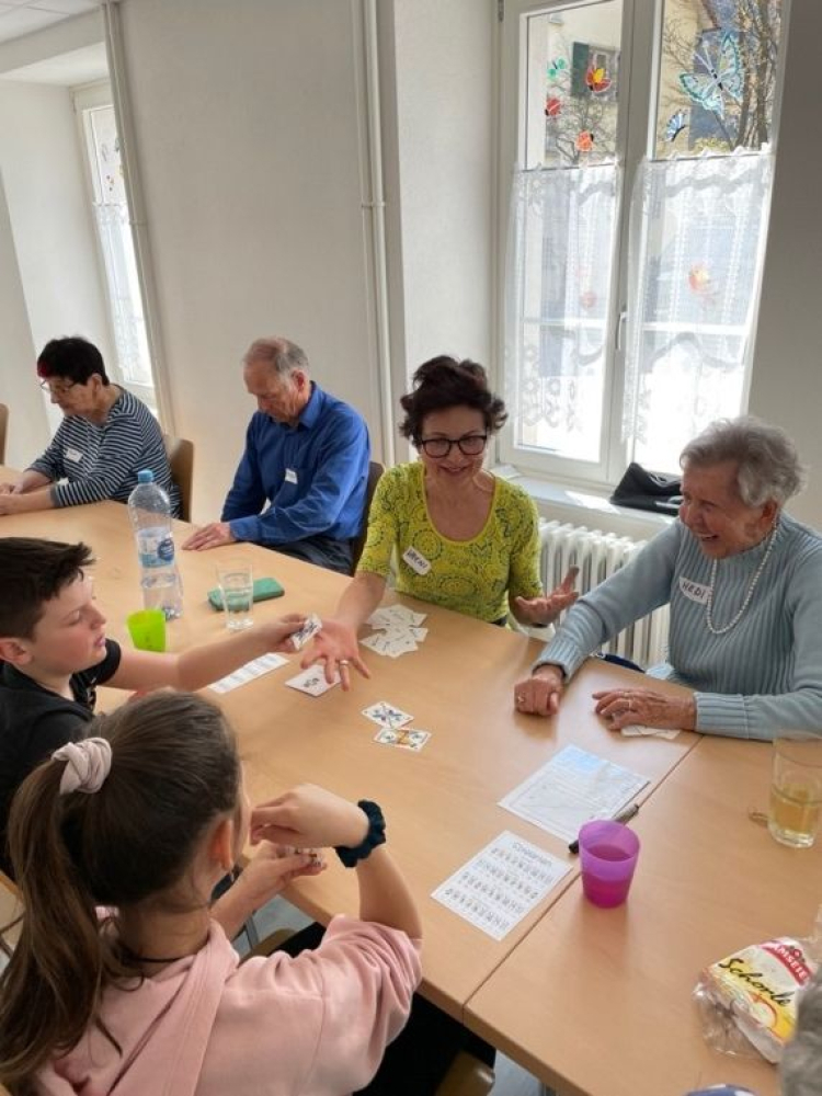 Die Atmosphäre war sehr fröhlich und entspannt, denn alle hatten sich sehr auf diesen Tag gefreut. Die Kinder und die Seniorinnen und Senioren lernten sich schnell kennen und fanden schnell gemeinsame Gesprächsthemen.
