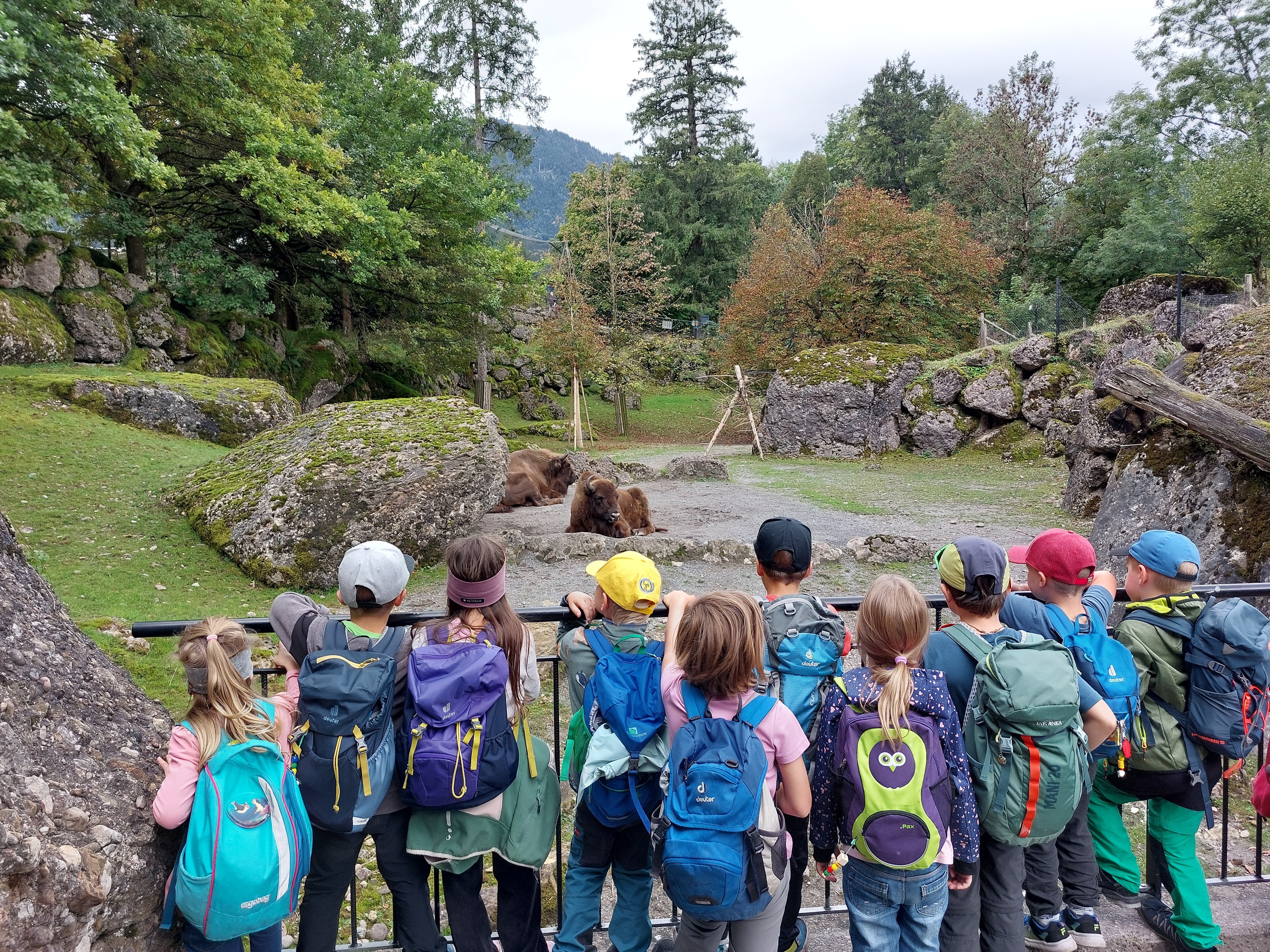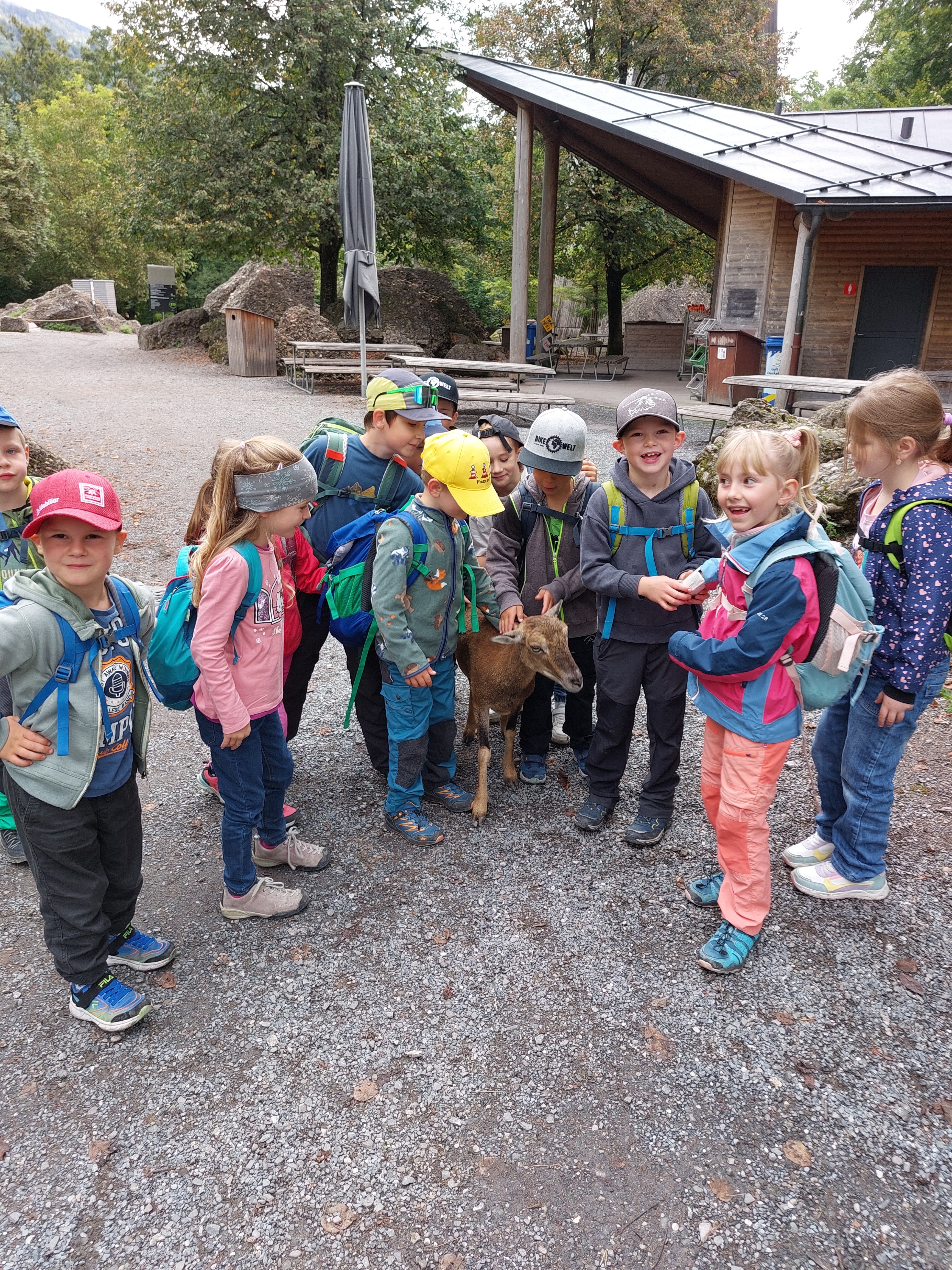 Die Kinder der Basisstufe machten gemeinsam den Rundgang durch den Tierpark. Besonders Spass machte das Tiere füttern und die Aussicht auf dem grossen Turm.